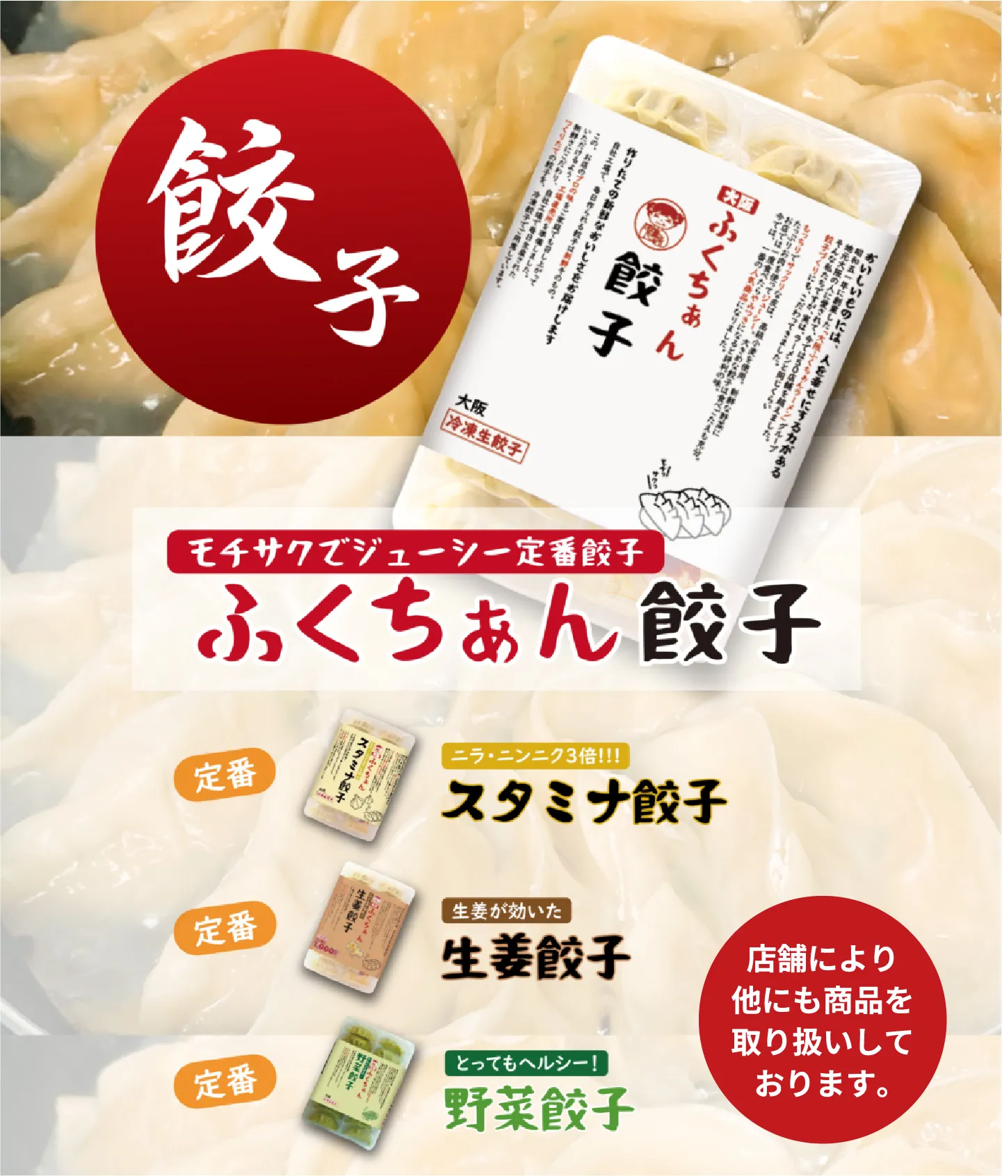 大阪で大好評の老舗ラーメンチェーン店「大阪ふくちぁん」で人気の餃子専門店を、無人販売方式で事業展開しています。