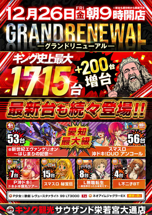 キング観光サウザンド栄若宮店がキング史上最大1715台となりグランドリニューアル!