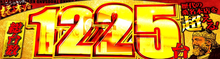 総台数/ 1225台 ・4円パチンコ397台 ・1円パチンコ256台 ・1000円/46枚スロット506台 ・6.25円スロット66台 |