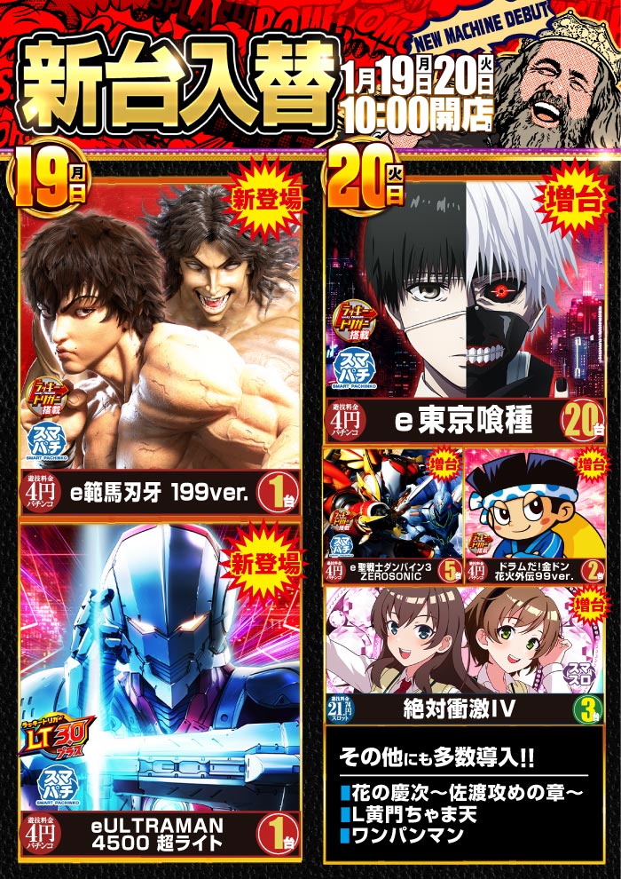 【1月19-20日】長浜のキング☆彡連日新台入替予定☆彡