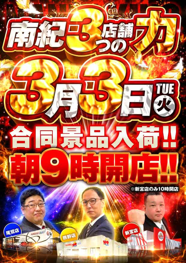 3月3日(火)南紀3店舗3つの力!合同景品入荷!!