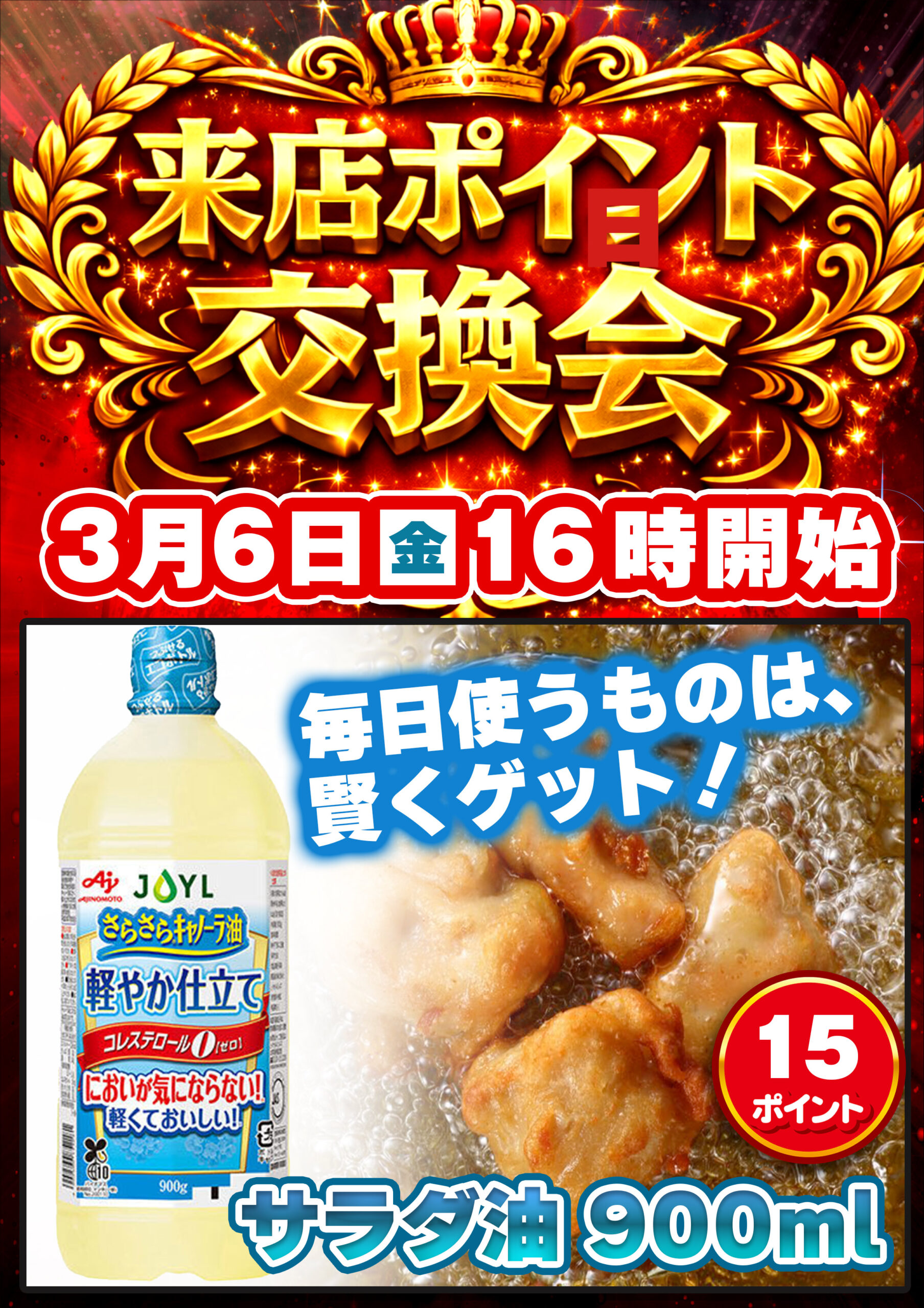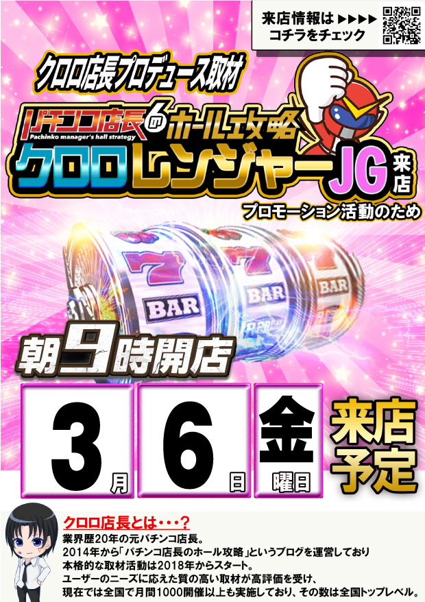 3月6日(金)KBT(くまキン、バリ、楽しい)!クロロレンジャーJG!!ポイント交換会も開催!