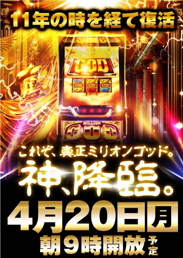 4月20日(月) 朝9時開店!11年の時を経てゴッド復活!!