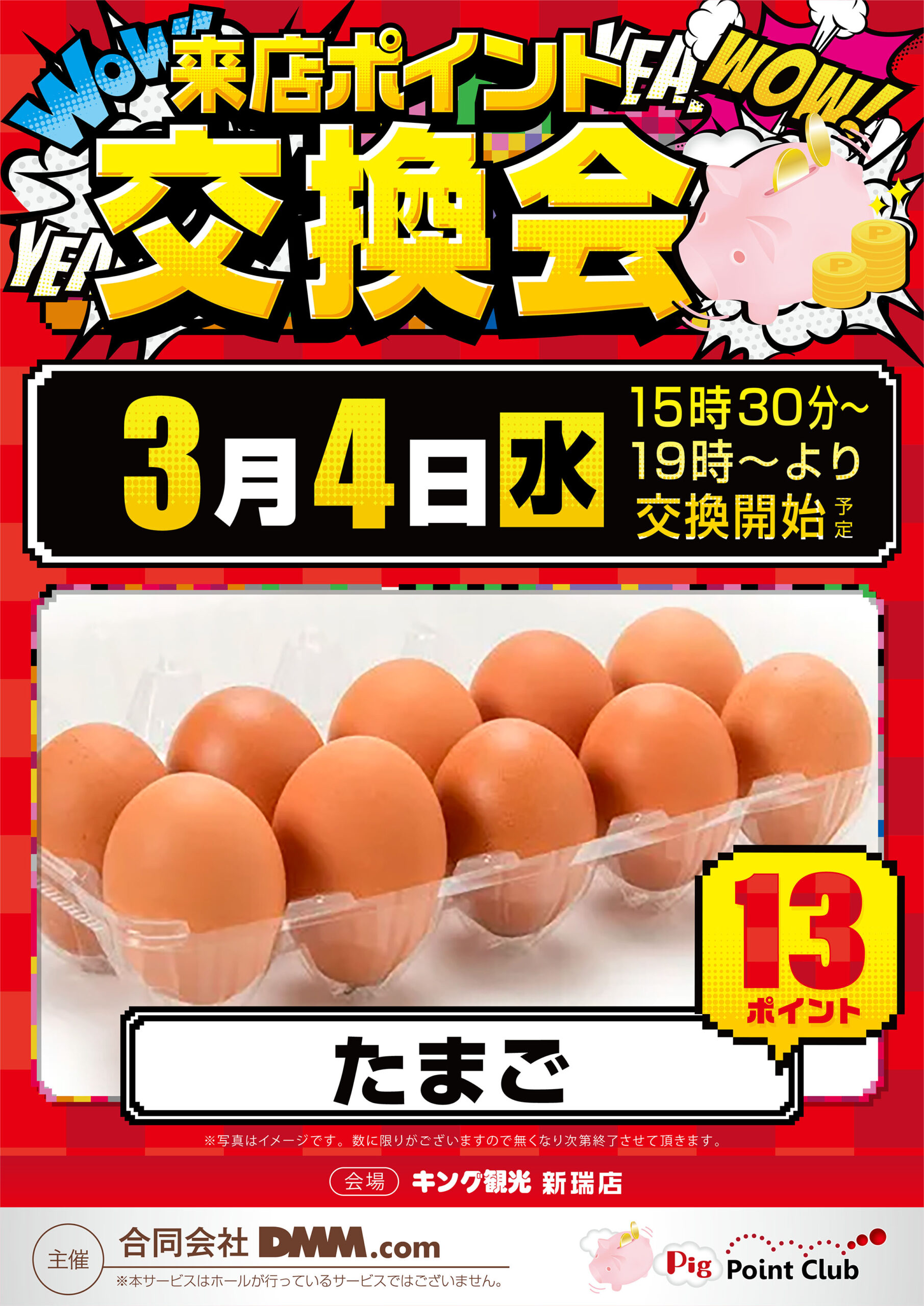 2026.03.03 3月4日【水曜日】 3/4(水) 朝9時開店! 加工女子取材班『瀬川沙美さん』来店予定ーーー\( ‘ω’)/ 来店ポイント交換会『たまご(10個入り)』も入荷予定ですよ~ 皆様のご来店お待ちしております♪